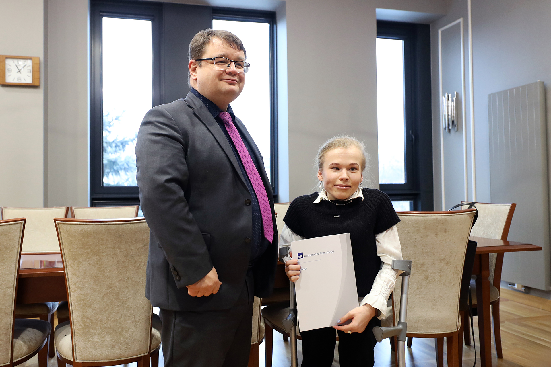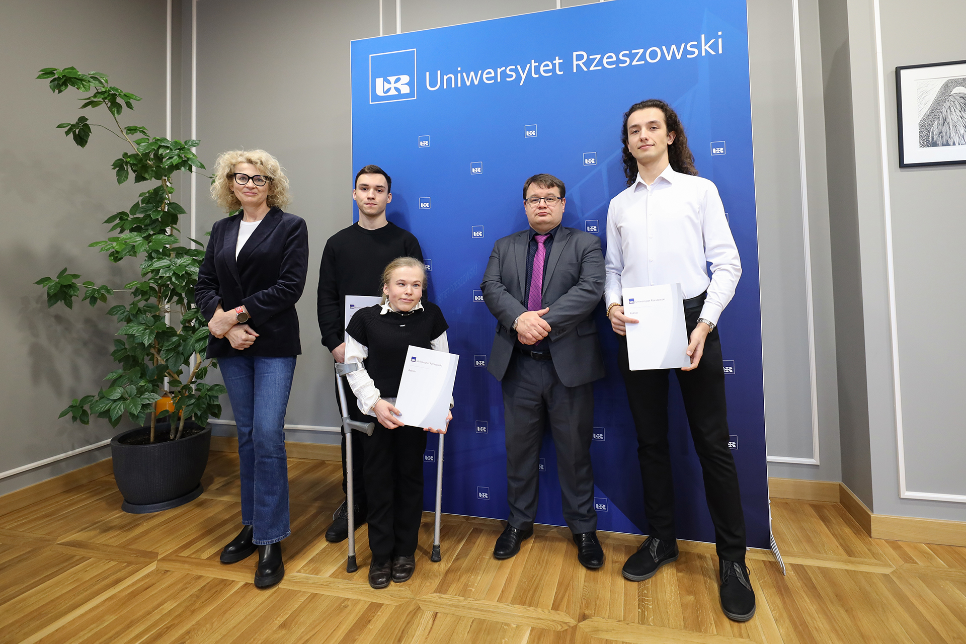 W dniu 5 lutego 2026 r. Rektor Uniwersytetu Rzeszowskiego, prof. dr hab. Adam Reich, wręczył listy gratulacyjne studentom objętym wsparciem Biura ds. Osób z Niepełnosprawnościami Uniwersytetu Rzeszowskiego, którzy odnieśli znaczące sukcesy sportowe na arenie ogólnopolskiej.