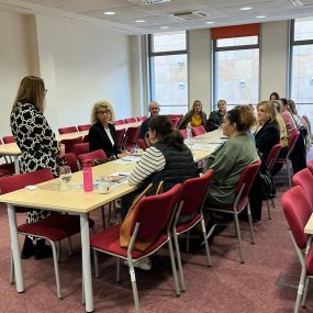 Prowadząca warsztaty, mgr Joanna Fularz, zwracała szczególną uwagę m.in.: na znaczenie języka, jakim posługujemy się w kontakcie z osobami w kryzysie, podkreślając rolę komunikacji niedyrektywnej i wspierającej. Omówiono również podstawowe zasady interwencji kryzysowej oraz wskazano, gdzie można kierować osoby potrzebujące specjalistycznej pomocy.